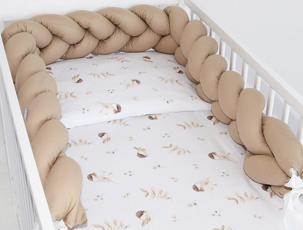 5 el.Pościel do łóżeczka 120x90 "Nature&Flowers" (wróbelki +beżowy warkocz)