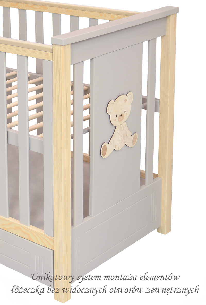 - Unikatowy system montażu boku łóżeczka bez widocznych otworów zewnętrznych