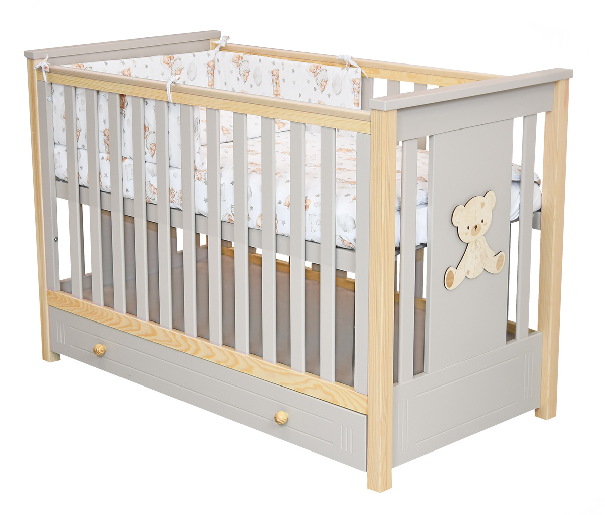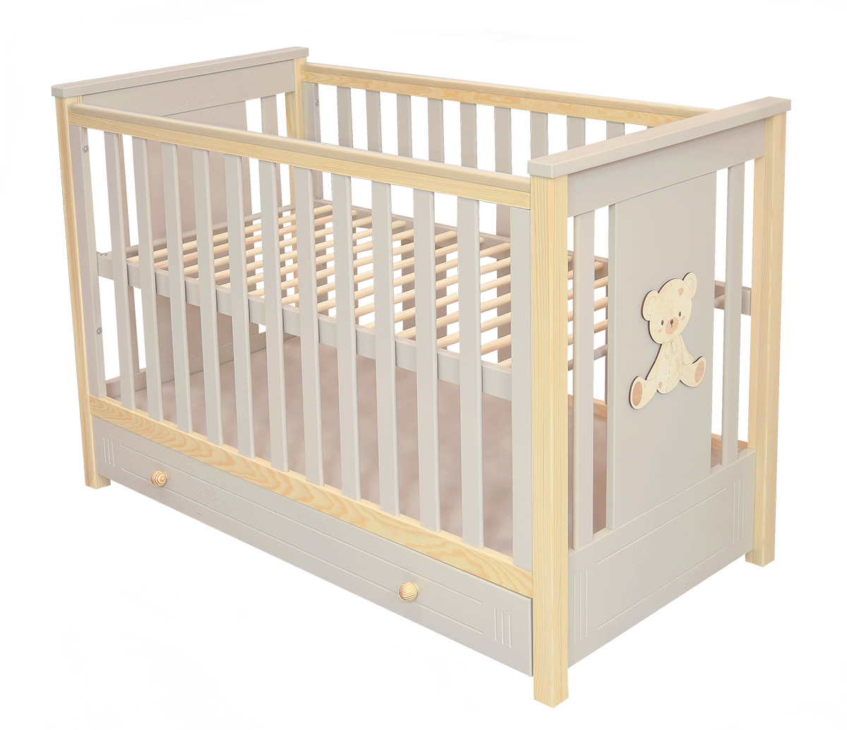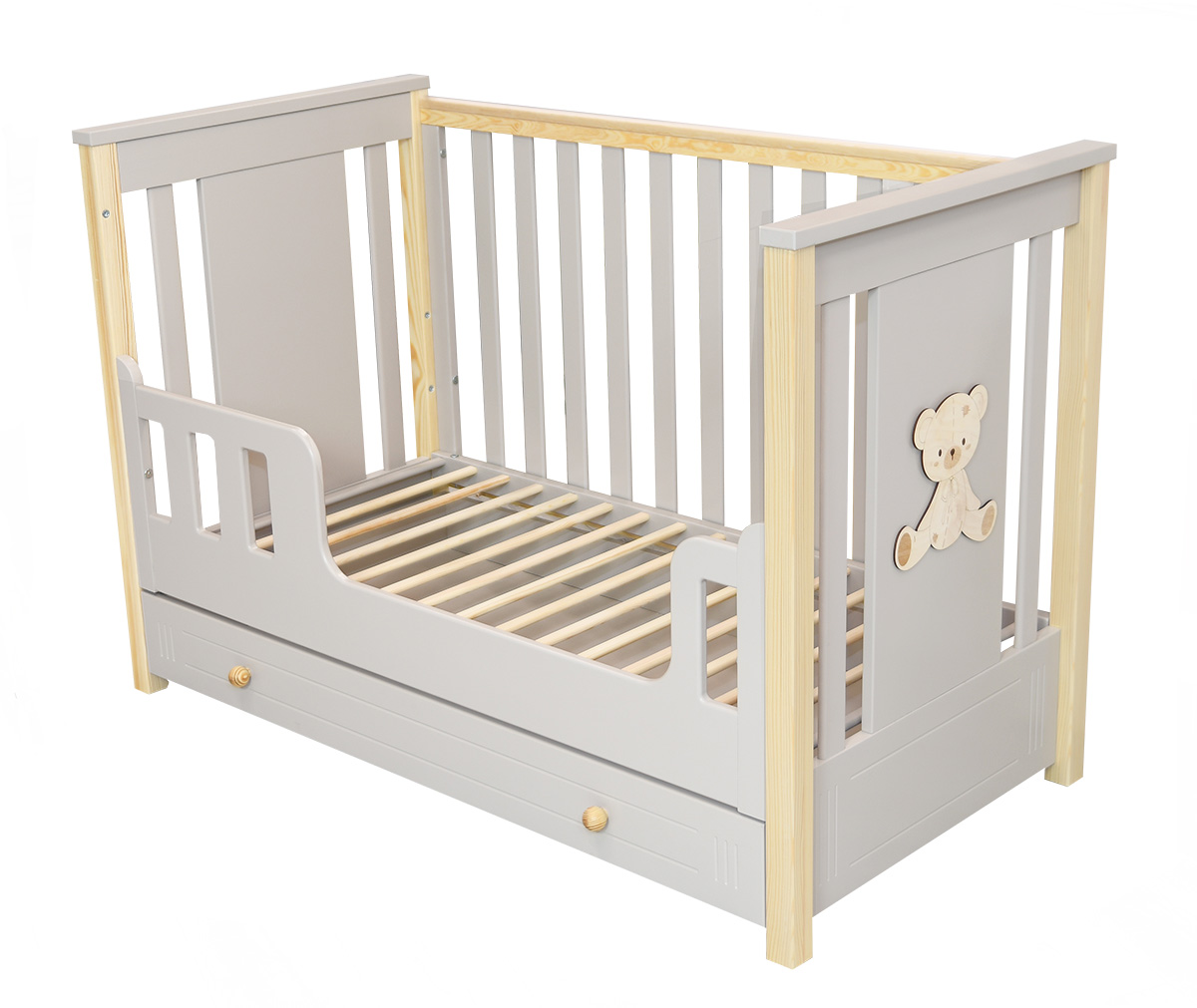 Łóżeczko z szufladą i tapczanikiem DIEGO PLUS 120x60 (kaszmir/sosna)