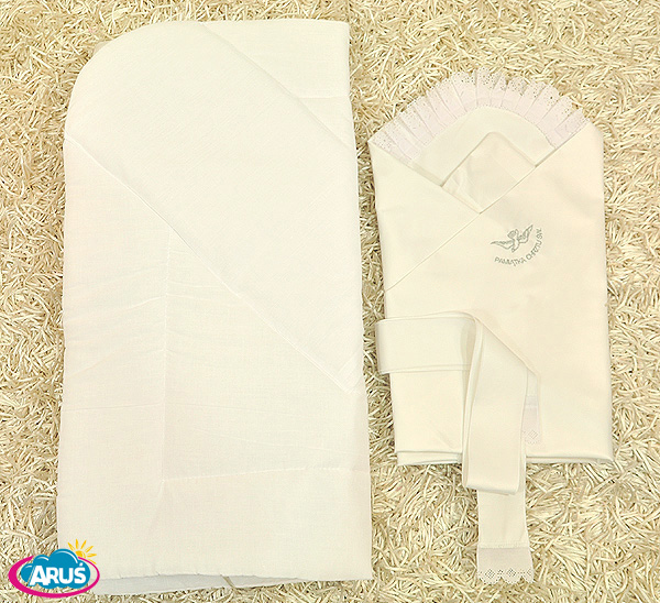 Stylowy rożek – becik niemowlęcy wykończony białą poszewką – doskonały dodatek do trzymania dziecka podczas chrztu!