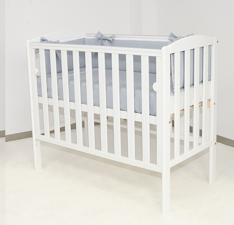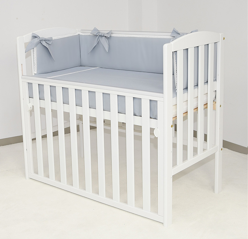 - Łóżeczko posiada opuszczany bok, dlatego może być używane jako wolnostojące albo dostawka do łóżka rodziców.
